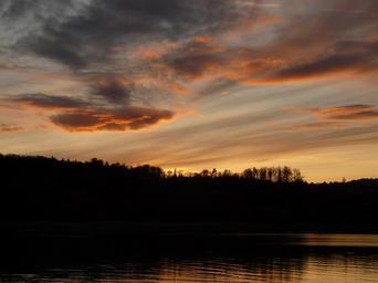 Keywords: sunset lake idyll landscape sky clouds water mirroring farbenspiel