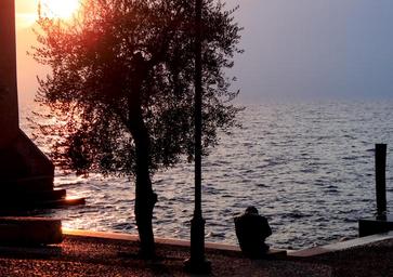 Keywords: sunset lake malcesine italy lake garda water on the lake tree porto vecchio solitude statue winter sadness abandonment