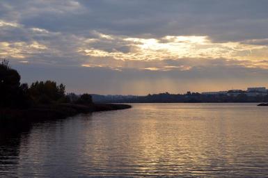 Keywords: sunset lake reservoir sky water summer vacation clouds silence sun nature evening ripple landscape the glare peaceful night pokoj