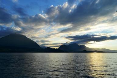 Keywords: sunset lake switzerland nature clouds sky reflection highlights overcast sky