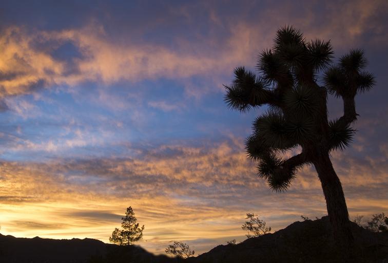 Keywords: sunset landscape mountains joshua tree silhouettes desert nature sky colorful dusk evening plant scenic wilderness national park california usa west twilight clouds