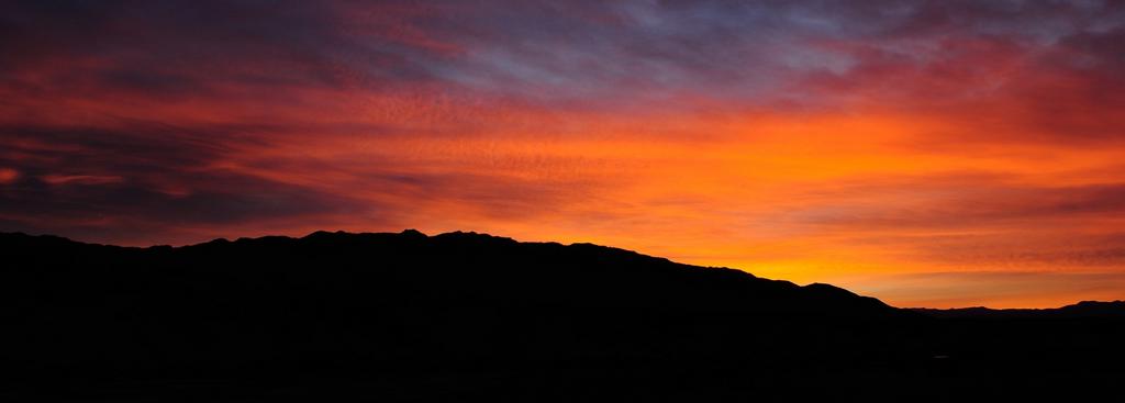 Keywords: sunset landscape silhouette desert nature sky colorful dusk evening scenic wilderness mountains orange twilight clouds