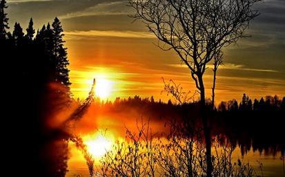 Keywords: sunset landscape twilight tree cloud lake summer contrast sky