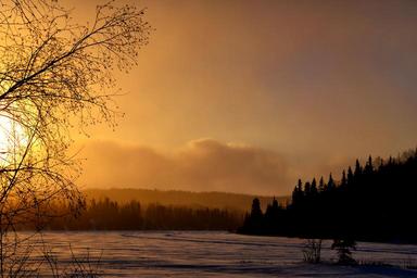 Keywords: sunset landscape winter twilight evening trees against day shades contrast frozen lake
