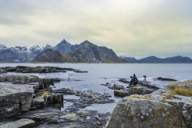 Keywords: sunset lofoten boats cabins sky refuge valley blue nature norway