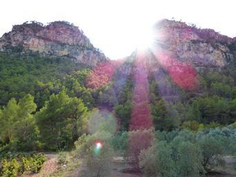 Keywords: sunset mountains forest landscape olive trees priorat