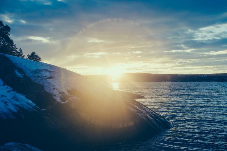 Keywords: sunset norway sea sun water coast winter lights landscape