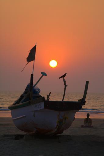 Keywords: sunset ocean boat beach girl meditation yoga india sun bird flag sand water light journey man orange nature dahl