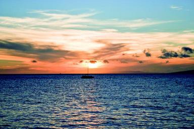 Keywords: sunset ocean lake boat water leisure scenic nature blue horizon