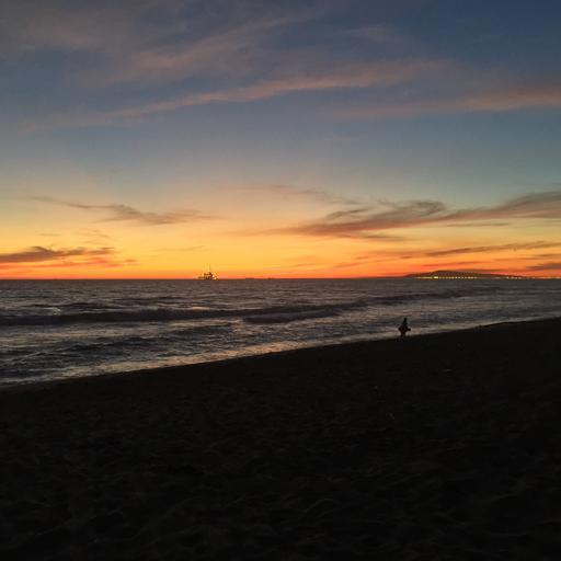Keywords: sunset ocean oil rig surf pacific beach summer calm
