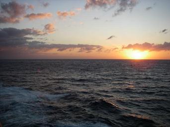 Keywords: sunset ocean sea calm sky clouds scattered dusk glow orange scenic seascape horizon twilight