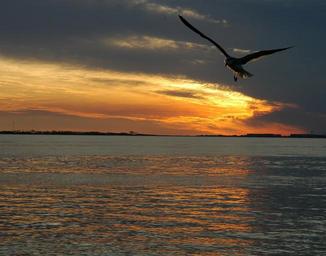 Keywords: sunset ocean sea sun nature summer landscape beach sunset tropical evening silhouette seagull bird flying orange yellow horizon twilight romantic