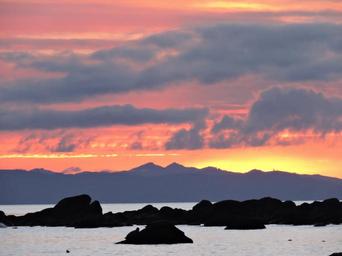 Keywords: sunset ocean shore sea water coast dusk evening twilight orange dramatic