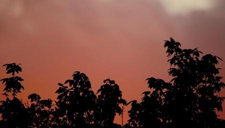 Keywords: sunset orange-pink glowing trees silhouette sky clouds outdoors scenic tranquil weather meteorology cloudscape environment nature