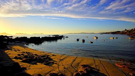 Keywords: portiño harbour cies islands buoyant outdoor coast seaside shore beach landscape sea sunset dusk ocean water cloud sky Portiño harbour, close to Baiona, Vigo, Spain. Portiño harbour, close to Baiona, Vigo, Spain.
