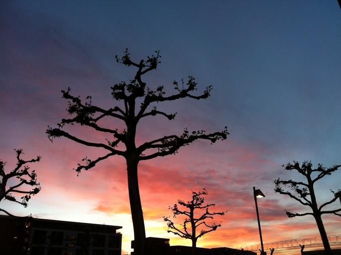 Keywords: sunset plane trees sky clouds