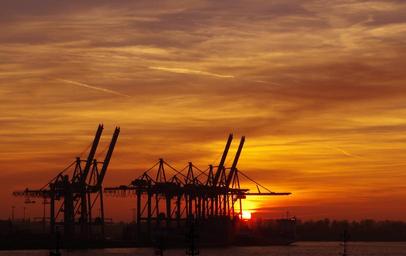 Keywords: sunset port mood afterglow evening sky sky gantry cranes harbour romance landscape sun hamburg