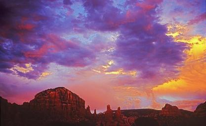 Keywords: sunset red rocks sky orange blue scenic buttes landscape nature evening dusk clouds yellow horizon scene outdoors sun