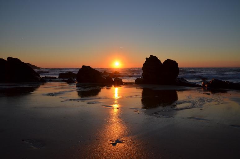 Keywords: sunset rocks nature landscape rock against light mar water beach ocean