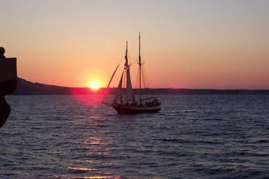 Keywords: sunset santorini abendstimmung greece romantic sea sailing vessel