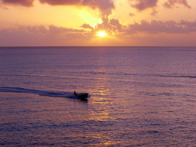 Keywords: sunset sea afterglow evening sky sun abendstimmung boot