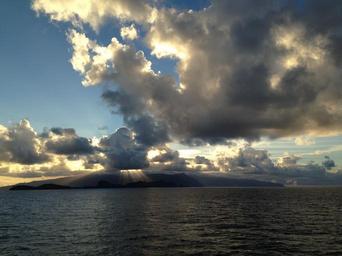 Keywords: sunset sea clouds light beam rays water nature landscape
