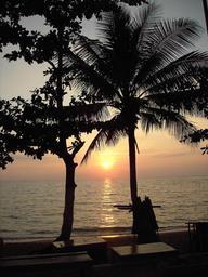 Keywords: sunset sea coast palm trees
