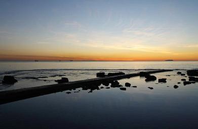 Keywords: sunset sea evening twilight abendstimmung sun beach setting sun ocean water sky