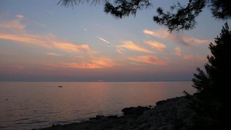 Keywords: sunset sea fishing boat evening sky afterglow atmosphere sky clouds water