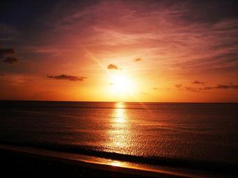 Keywords: sunset sea ocean clouds sun sunset on the sea evening violet red orange yellow beach sun's rays reflections on the water horizon twilight landscape blazing sky sunlight guadeloupe