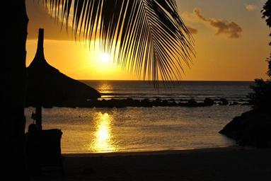 Keywords: sunset sea pal horizon beach atmosphere umbrellas sun sky