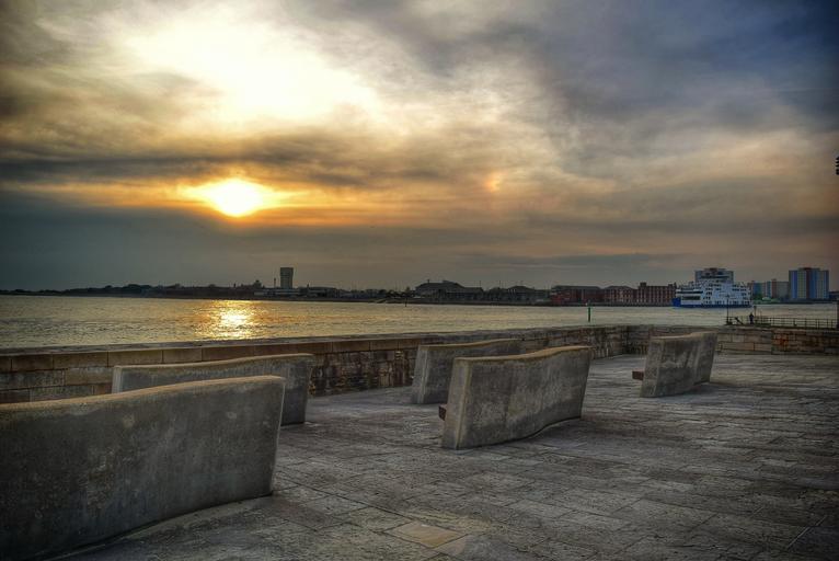 Keywords: sunset sea portsmouth hampshire uk sky and clouds bench