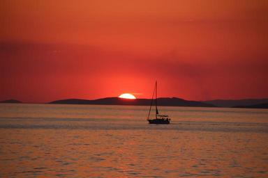 Keywords: sunset sea romantic evening sky afterglow abendstimmung sunlight boot sky mood dusk lichtspiel water sailing boat atmospheric evening sun twilight rest evening silhouette