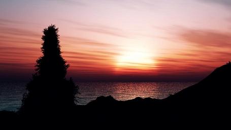 Keywords: sunset sea tree rock sun afterglow horizon silhouette