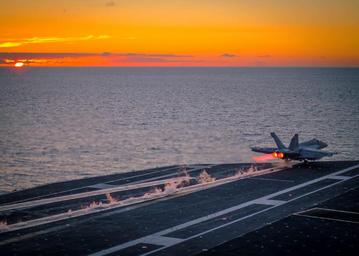 Keywords: sunset seascape aircraft jet military f-18 super hornet aircraft carrier touch and go flight deck aviation airplane plane ship vessel nautical maritime sea ocean launch usa