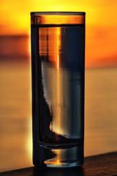 Keywords: sunset seaside water glass reflections orange fire sky paradise water glass by the sea drinks by the sea