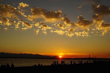 Keywords: sunset seattle beach sunset golden sunset horizon orange sky evening mountains sea water ocean sky