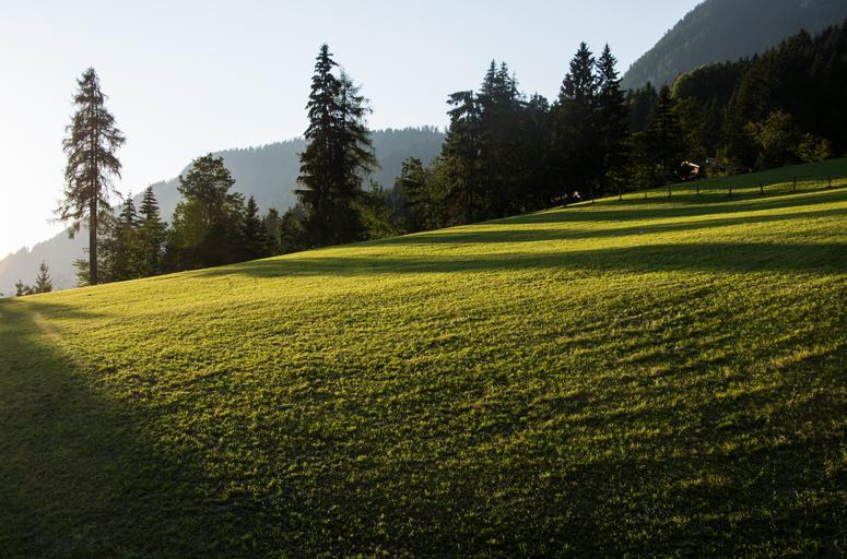 Keywords: sunset shadow nature landscape meadow mood grass sunbeam