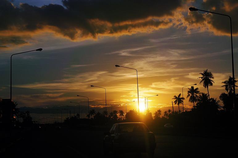 Keywords: sunset sky azure cloud evening sun silhouette light image view