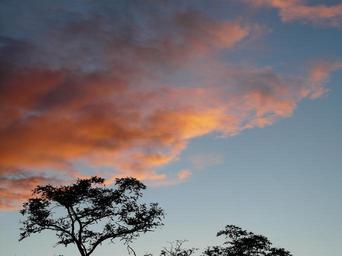 Keywords: sunset sky clouds afterglow city homes tree blush