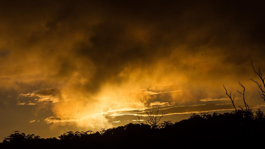Keywords: sunset sky clouds orange grey dramatic storm australia horizon trees