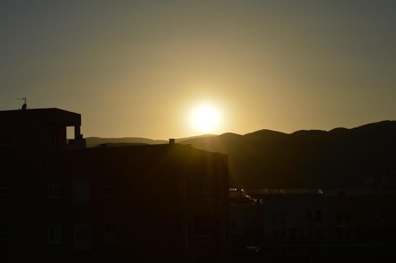 Keywords: sunset sky heaven sun mountain houses evening sun silhouette landscape city