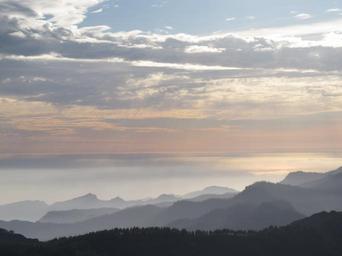 Keywords: sunset sky mist clouds mountains orange blue