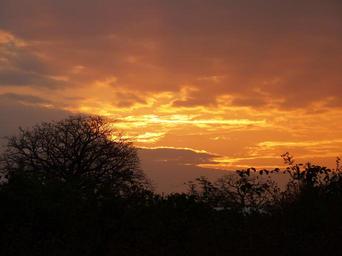 Keywords: sunset sky orange clouds tree sun afternoon nature colors backlight depth landscape