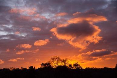 Keywords: sunset sky pink orange blue clouds horizon trees australia mellow