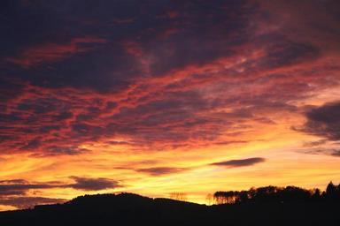 Keywords: sunset sky sun abendstimmung mountain hill forest trees