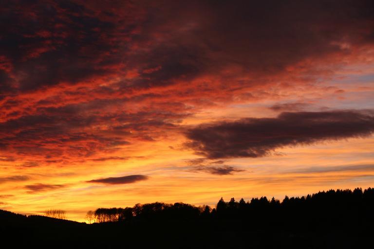 Keywords: sunset sky sun forest trees abendstimmung clouds