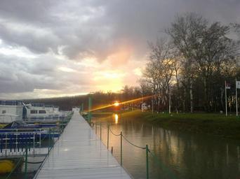 Keywords: sunset sun clouds sky pier lake water harbour