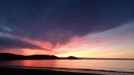 Keywords: sunset sun colors beach landscape background orange dark clouds guanaqueros region of elqui chile coquimbo red blue pink red blue