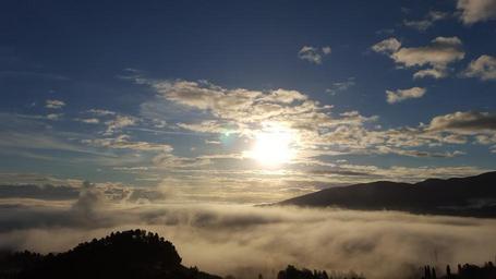 Keywords: sunset sun fog clouds